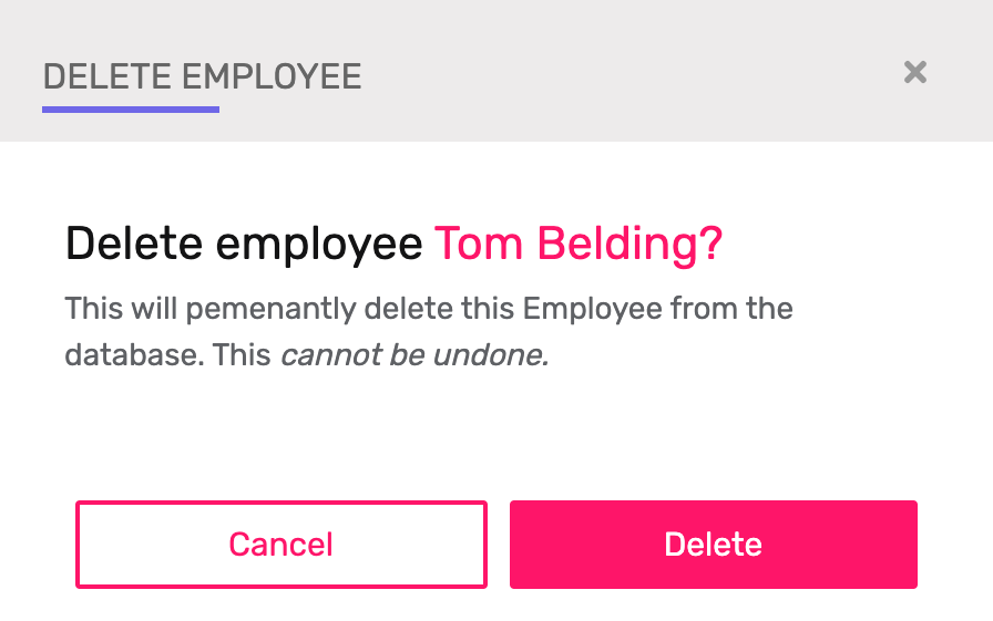Locate the employee account you would like to delete by using the search field, located in the top right, or by navigating the employee list.