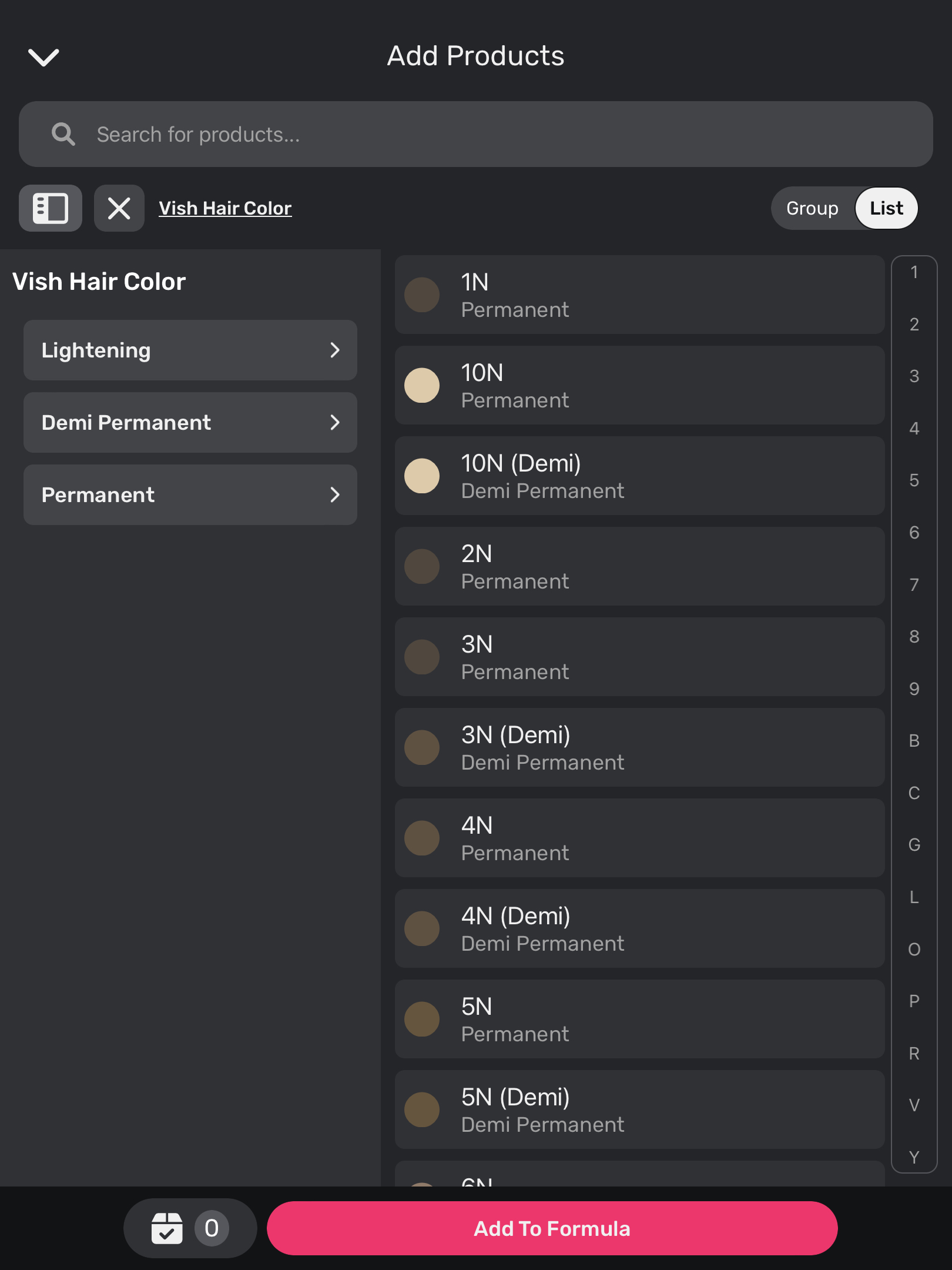 - Log into the tablet and start a new formula to see the same category order on the tablet