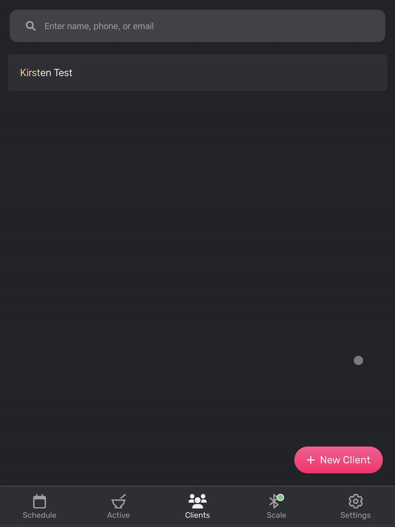 - Use the search bar to find the desired client in the list. It's usually fastest to use the Search at the top of the Client List to search by the customer's name, phone number, or email. Feel free to scroll through the list to find the customer you're looking for.